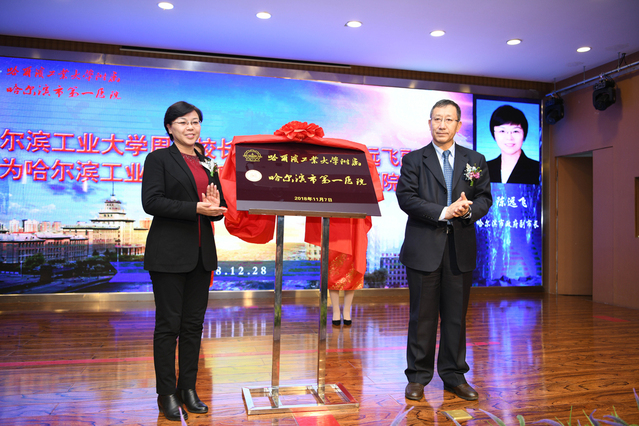 周玉与陈远飞为哈工大附属医院市一院揭牌