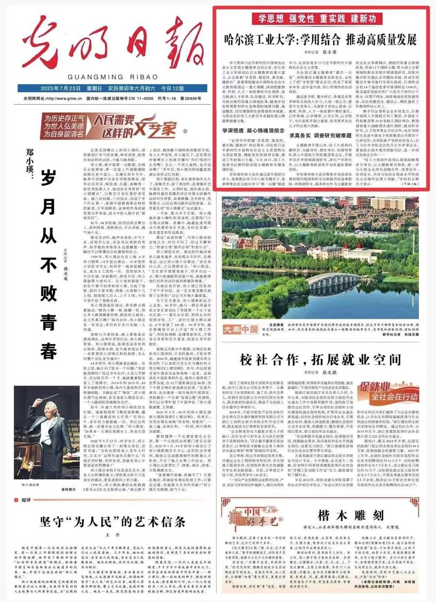 《光明日报》头版聚焦哈工大主题教育成效:学用结合 推动高质量发展
