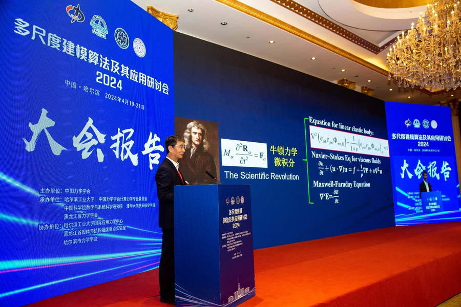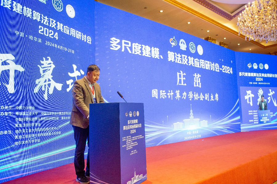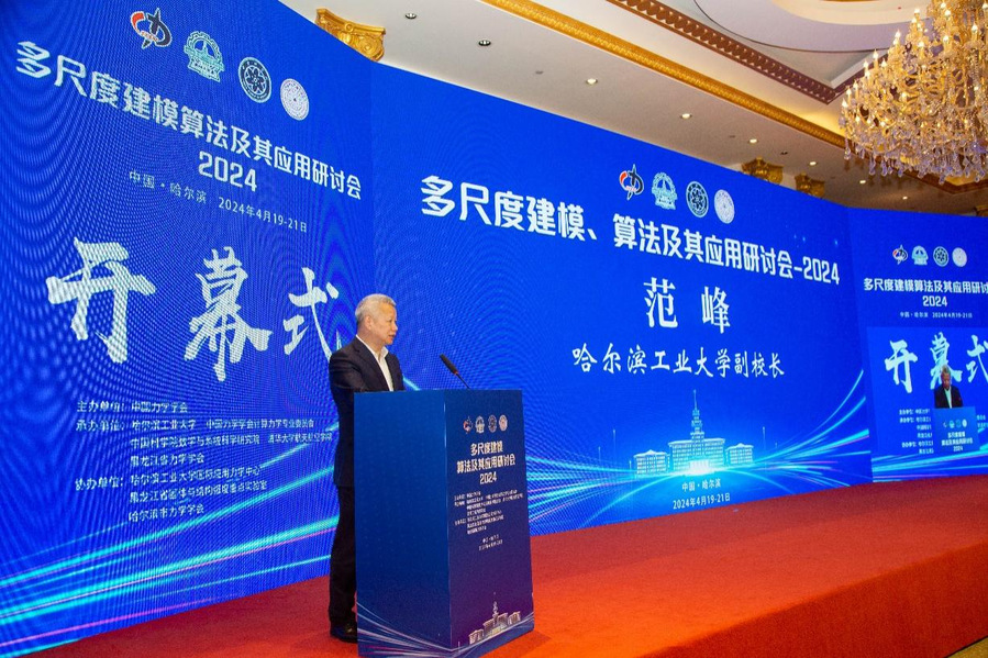 哈工大全媒体(商艳凯 杨志强 文/图)近日,多尺度建模、算法及其应用研讨会2024在哈尔滨举行。来自全国近60家高校、科研院所和企业的专家学者聚焦国家重大战略需求领域的多尺度力学问题开展研讨交流。国际计算力学协会副主席、清华大学庄茁教授,中国科学院数学与系统科学研究院崔俊芝院士,我校副校长范峰,我校力学学科教授委员会主任、未来技术学院院长冷劲松院士在开幕式上致辞。