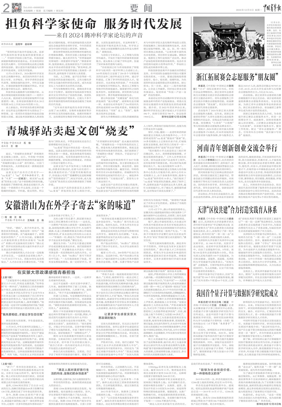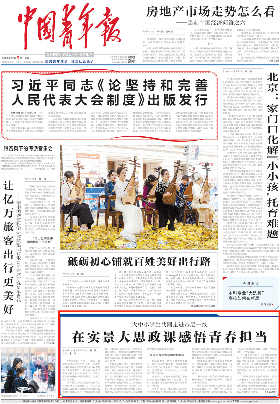 哈工大全媒体(李双余/文)12月9日,《中国青年报》头版推出《在实景大思政课中感悟青春担当》,报道我校大中小一体化实景大思政课的创新实践,聚焦师生在实景大思政课中的感悟收获和特色做法。