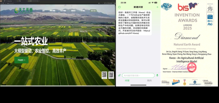 学校自主研发的“天工开悟”农业大模型,全球首个农业大模型驱动的大田种植综合服务平台,深度融合知识问答、图像理解、农事规划、生长预测与智能体调度五大核心能力,初步实现了机理模型的全参训练和80余项生长指标预测,相对误差在5%以内。相关技术成果辐射能力覆盖从设施农业到万亩粮田的全场景,成为全球智慧农业领域的标志性成果。