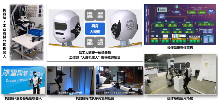 哈工大团队基于具身智能大模型技术,自主研发了软硬件一体化的具身机器脑系统,具备跨平台适配能力,可灵活部署于多种形态的机器人平台,为机器人提供多场景、多任务下的多模态感知、自然交互、长序列规划和精准操控等核心能力。学校自主研发完成的国内首个专用于具身智能的机器人智能操作系统“琢识”(insightOS),具备“即插即用、多机协同、模型复用、跨品牌适配”等关键能力,支持包括人形机器人、轮式机器人、四足机器人、机械臂等多品类异构机器人设备。自主研发的具身智能大模型,在180个仿真环境以及30个真实世界任务中验证。