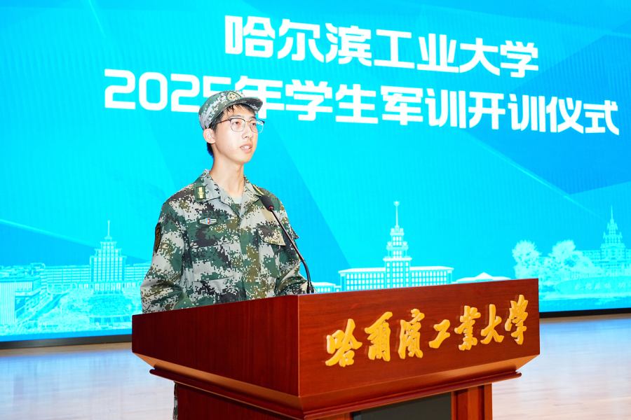 “军训是我们大学生活的起点,也是我们传承哈工大精神的开始。让我们以‘规格严格’为标尺、以‘功夫到家’为根基,在接下来的学习生活中,锤炼意志品质,提升自我能力,在梦想的校园里谱写属于自己的卓越篇章!”未来技术学院2025级本科新生钟沐芸作为学生代表发言。